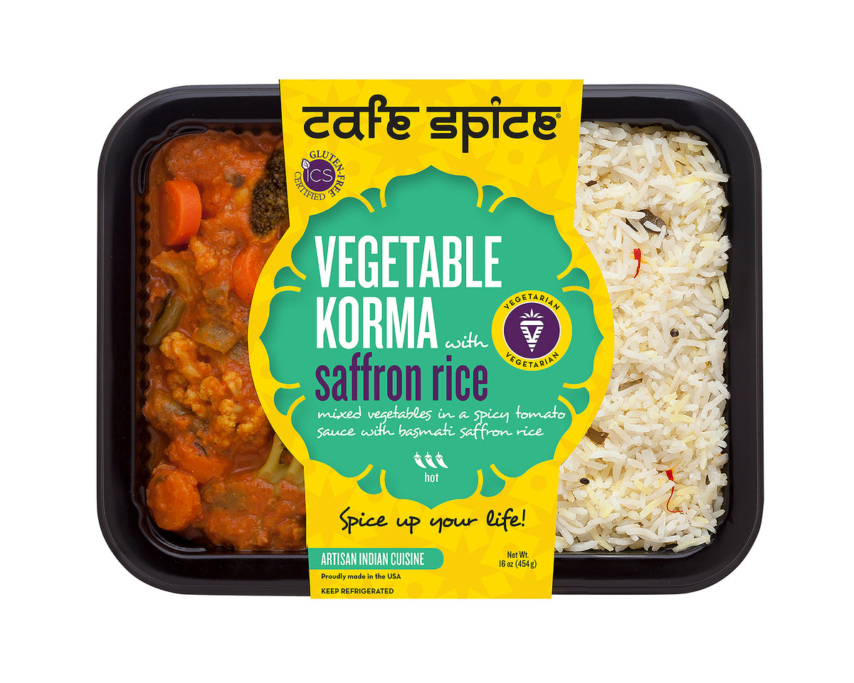 Kormas vary from region to region throughout India. In our North Indian version of Vegetable Korma, a medley of vegetables is authentically braised with our select blend of Indian spices then cooked to perfection in a spicy tomato-cream sauce. Complementing this dish is our aromatic Basmati Rice cooked with saffron, whole cardamom pods and bay leaves.