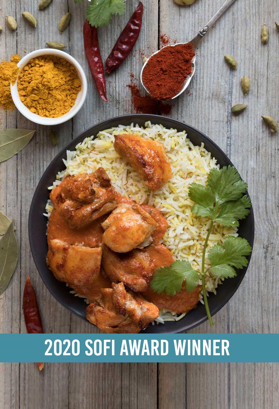 While invented in the UK, Chicken Tikka Masala has become the most popular dish in Indian restaurants across the world. In our version, we honor the undeniably delicious recipe with fresh ingredients and spices. We marinate our chicken in a tandoori spiced yogurt, roast it, then add it to the mouth-watering tomato sauce, prepared with a hint of cream and aromatic spices. This dish is paired with a serving of Basmati saffron rice, which is grown in the Himalayan foothills, prepared with real saffron threads and cooked with whole cardamom pods and bay leaves.