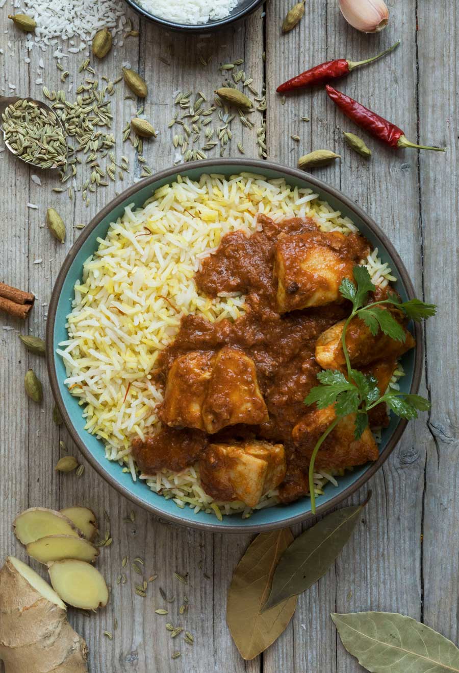 Meet your new healthy go-to meal. Our Coconut Chicken Curry, enjoyed as a comfort food in South India, features tender chicken simmered in a tomato-coconut milk curry with aromatic hints of cinnamon and clove. This dish is paired with a serving of Basmati saffron rice, which is grown in the Himalayan foothills, prepared with real saffron threads cooked with whole cardamom pods and bay leaves.